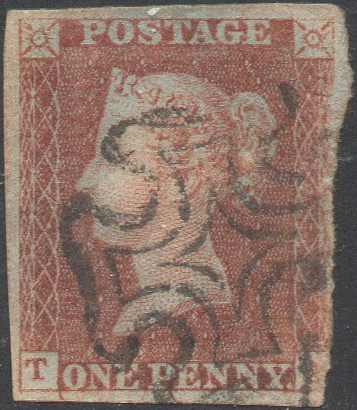 1841 1d Red-brown A GU single from this SCARCE plate, with two-and-a-half good-to-VERY LARGE margins, but close E and trimmed SE, lightly cancelled with a black Maltese Cross. In the SCARCE STATE 2 of the final repair, showing no 'O' Flaw. Also with faint VGL NE. Cat.£375. | ![]() £20.00 |
