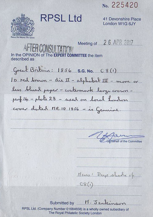 | 1857 SG36, SPEC.C11 (Die II Alph III, Large Crown, Provisional Perf.16) | |||||