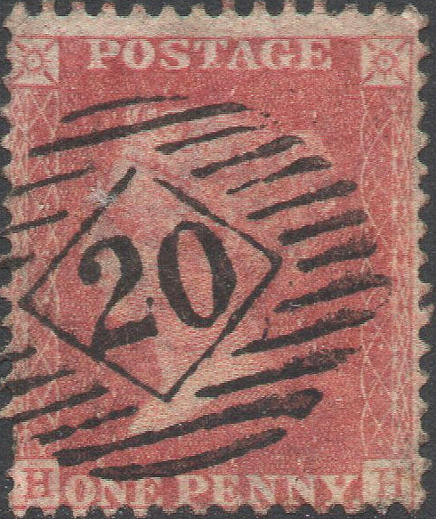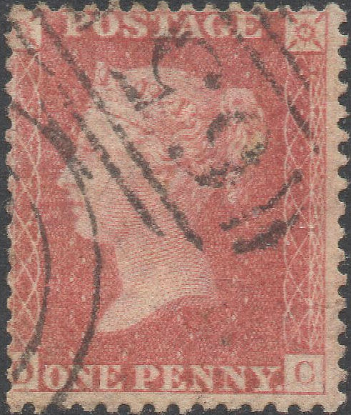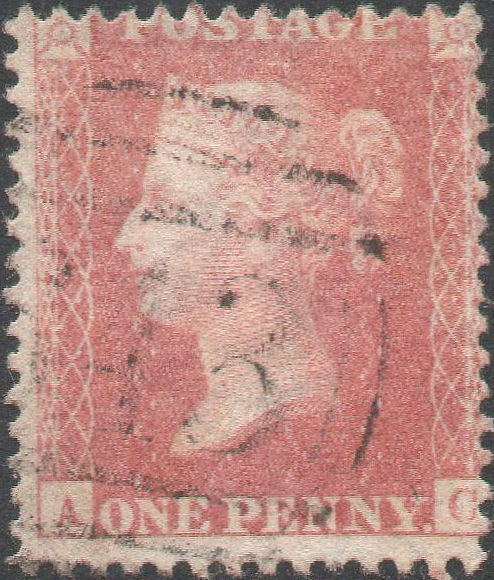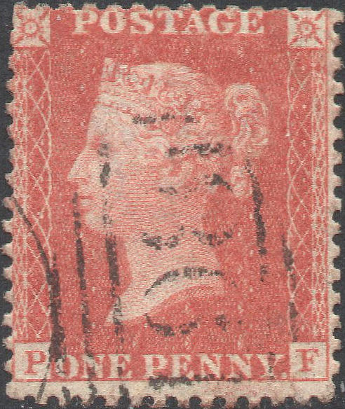 A VFU single from this SCARCE plate, in a PRE-FIRE PALE RED shade (this plate not at press at Savoy Street), WELL-CENTRED, with FULL PERFS, cancelled with a Stourbridge '750' SIDEWAYS DUPLEX. Lower E frame-break, NE 1 o'clock Ray Flaw, and letters misplaced high right and low left, with the 'A' blind. Cat.£250. | £65.00 |