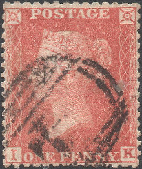 A FU+ single from this VERY SCARCE plate, in a PRE-FIRE PALE RED shade (this plate not at press at Savoy Street), WELL-CENTRED, with FULL PERFS, but rather firmly cancelled with a London District 'W.C.3' numeral (Dubus Type 1B, Parmenter Rarity 'D' - 'NOT COMMON'). 'K' misplaced right. Cat.£275+. | £60.00 |