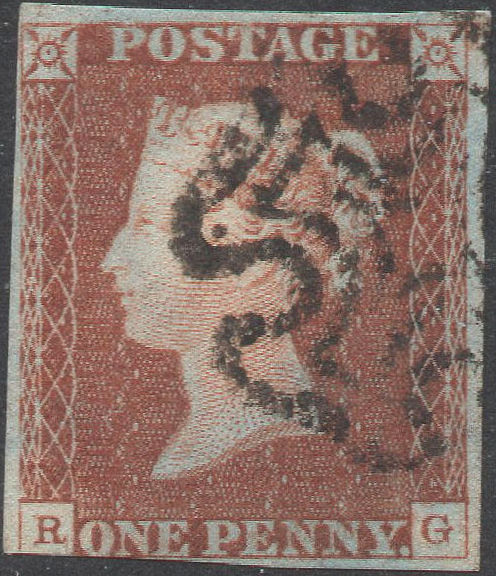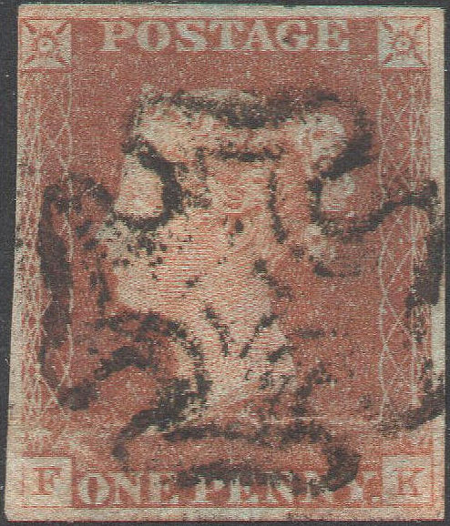 1841 1d Red-brown A GU single from this SCARCE plate, with two-and-a-half good-to-VERY LARGE margins, but close E and trimmed SE, lightly cancelled with a black Maltese Cross. In the SCARCE STATE 2 of the final repair, showing no 'O' Flaw. Also with faint VGL NE. Cat.£375. | ![]() £20.00 |