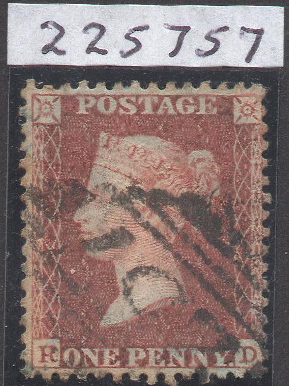 Ex WIGGINS, a FU+ single from this VERY SCARCE plate, off-centre low, but with FULL PERFS, lightly cancelled with an Uxbridge '830' SIDEWAYS DUPLEX. 'D' tilted W. Cat.£200. | £45.00 | ![]() |